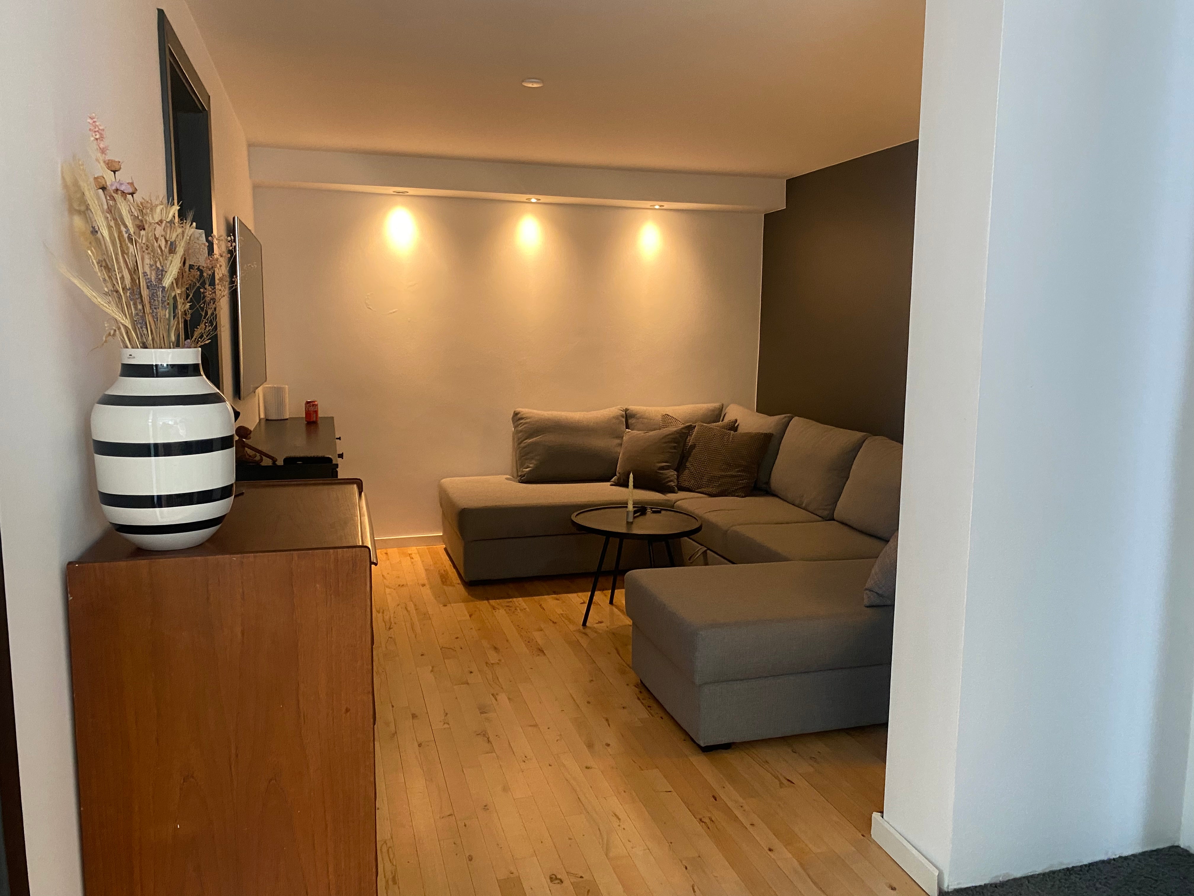 Vores velindrettede kælder indeholder lille stue med sovesofa og lille spisebord, et værelse med dobbeltseng (160x200) samt adgang til badeværelse med brus og badekar. ( Dette har i for jer selv under opholdet) Vaskemakine og tørretumbler findes også i kælderen og vil måske blive brugt af værten selv.
