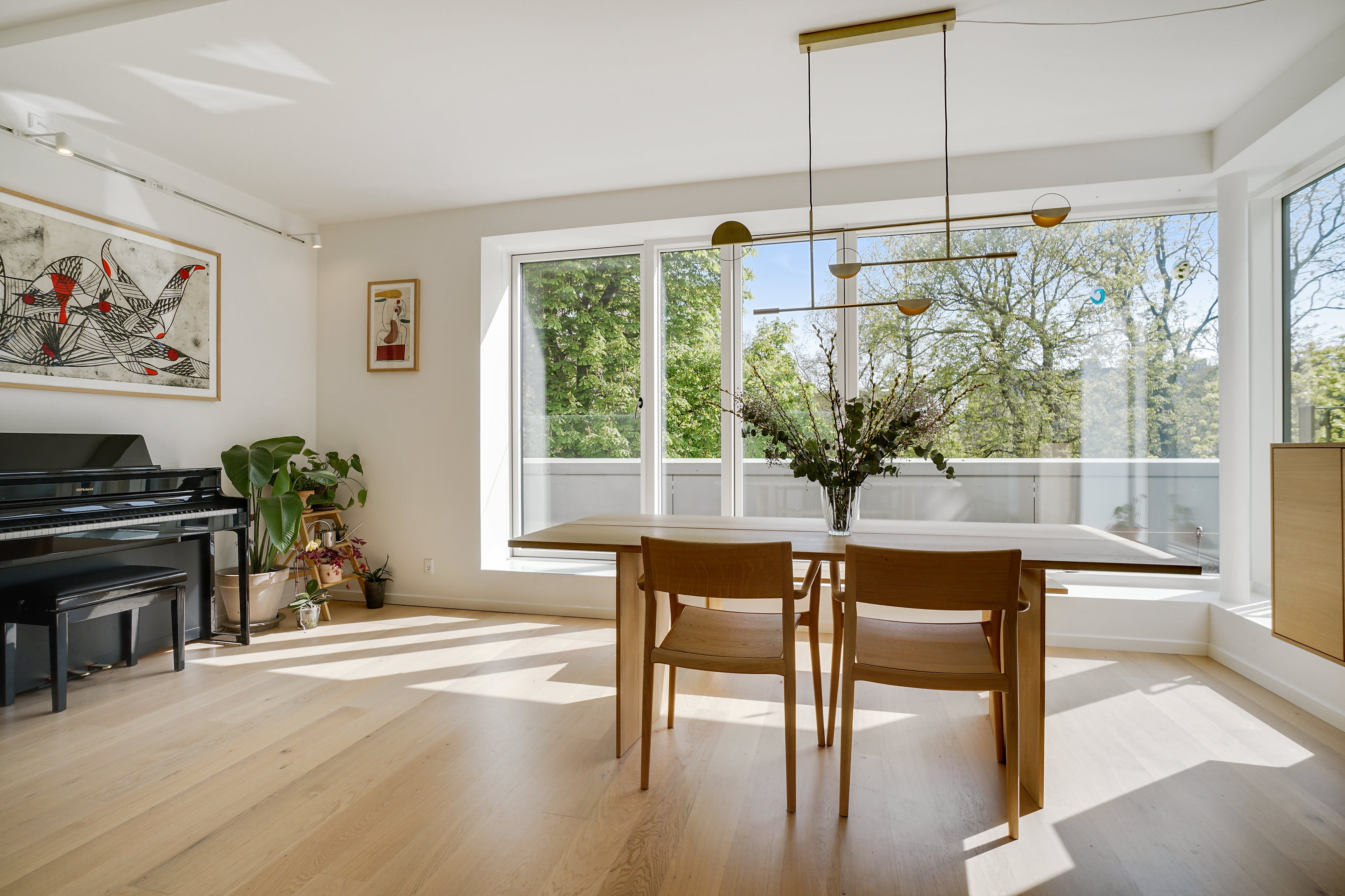 The apartment consists of 90 square metres of space, with beautiful New Nordic design, modern features and a large terrace with beautiful views of the historic botanical garden.