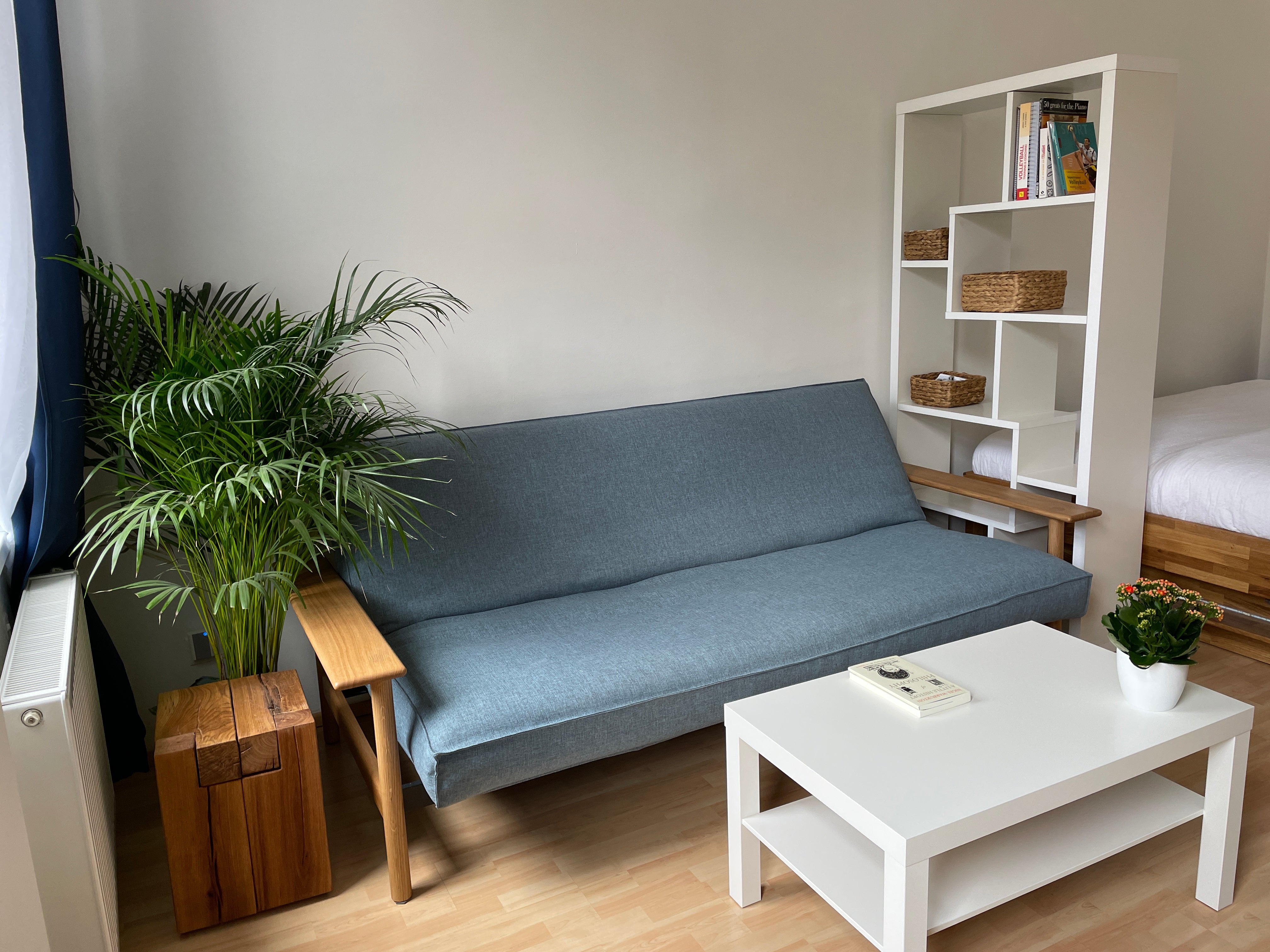 The bedroom consists of a king-size bed (180x200cm) with a mattress of the highest quality, to make your stay extra cozy. A comfortable convertible sofa is also there to help you relax after a long day!